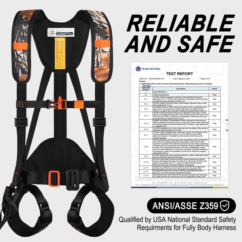 - Extra Reliable & Safe: KALKAL tree stand harness has been qualified by USA National Standard Safety Requirements for a full body harness, also with a whistle on the chest strap, providing additional reliable safety for your hunting adventures