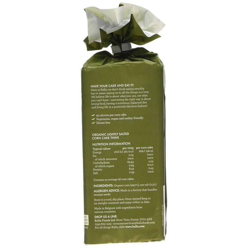 Kallo Organic Lightly Salted Low Fat Corn Cakes, 130g