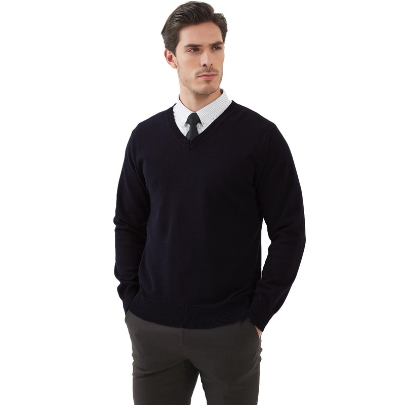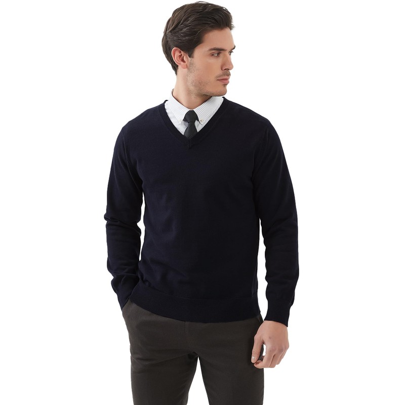 Kallspin Men's Long Sleeve Full Cotton V Neck Pullover Regular Fit Lightweight Classic Sweater