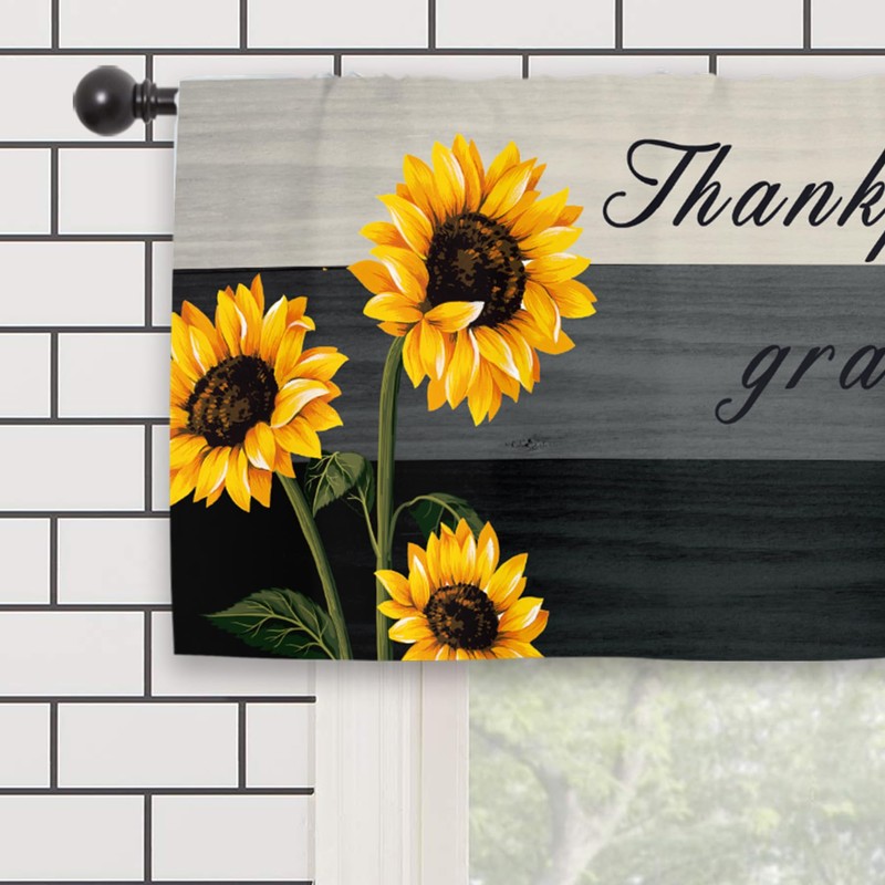 Kalmico Farmhouse Sunflower Rustic Kitchen Curtain Valance 54W x 18L Inch Wood Wooden Country Rural Rod Pocket Short Cafe Small Window Treatment Drapes Decor