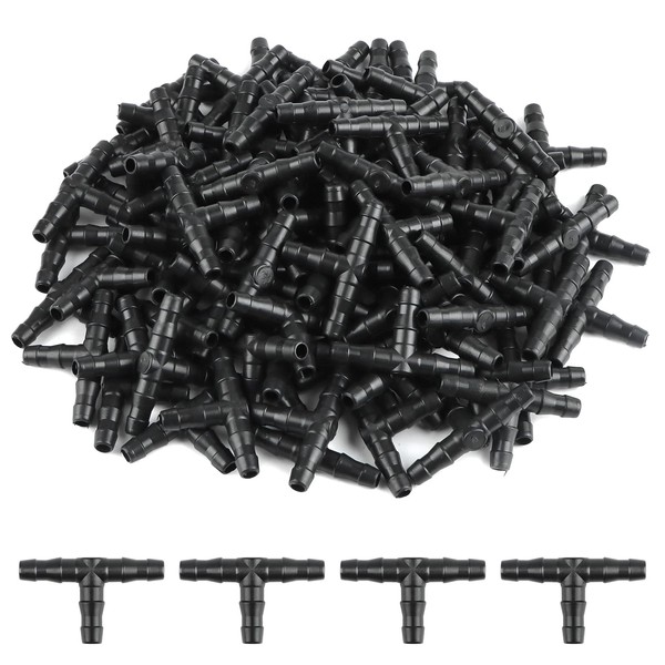 Kalolary 100 Pcs Tee Connectors Irrigation System 1/4" Barbed Connectors Drip Irrigation Tee Pipe - PVC Sprinkler Drip Automatic Irrigation Watering System Tool Kits …