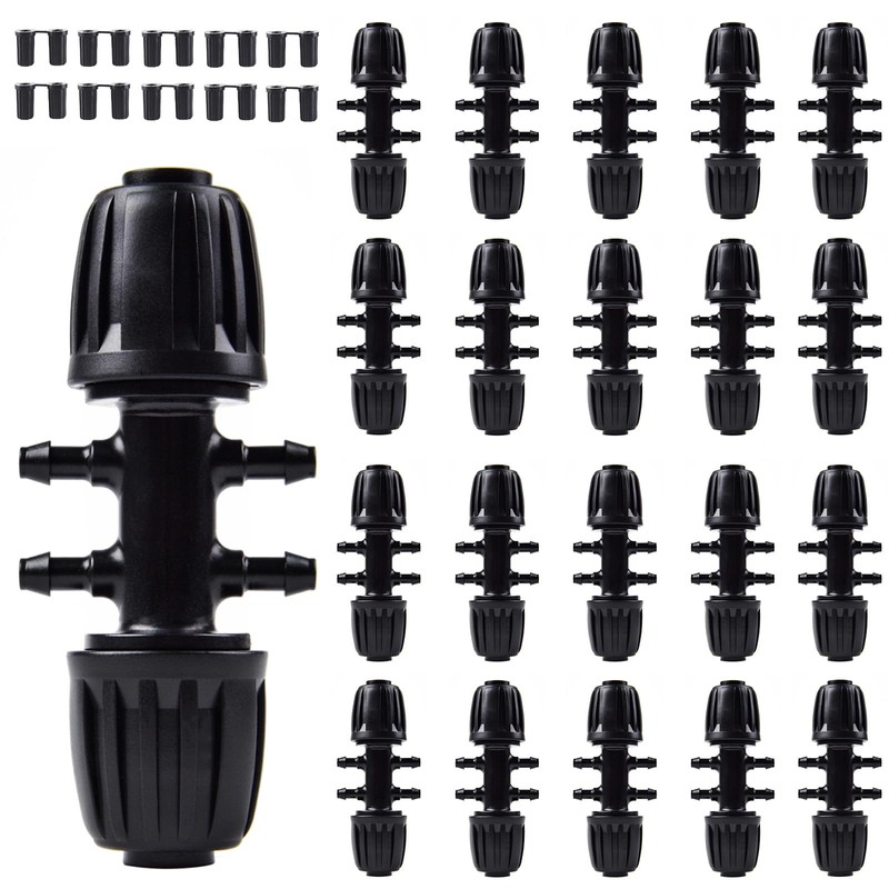 Kalolary 20PCS Barbed Tee 1/2 inch Tubing to 1/4 inch Irrigation Tube Anti-Drop Premiun Fitting (fits 13mm ID/ 4mm ID) (Black)