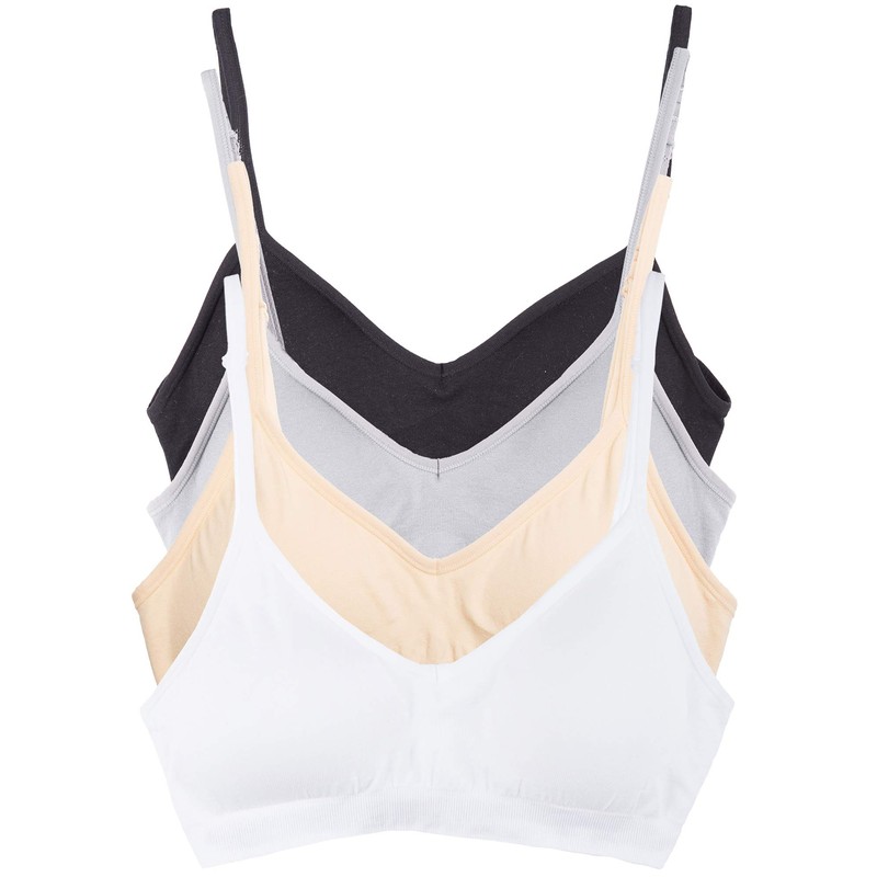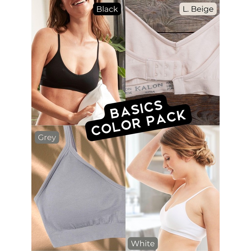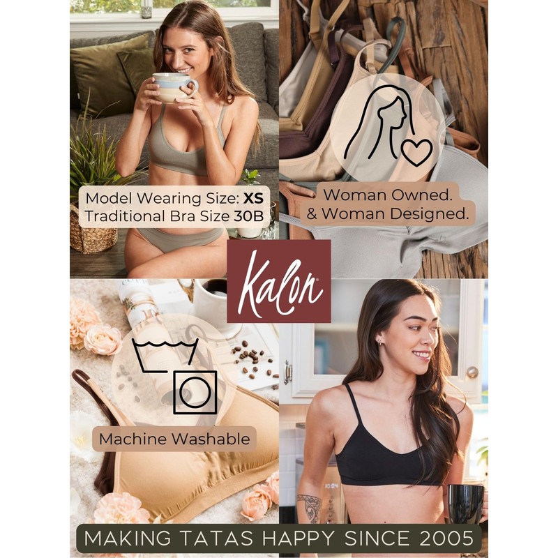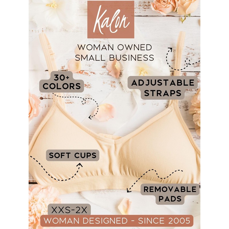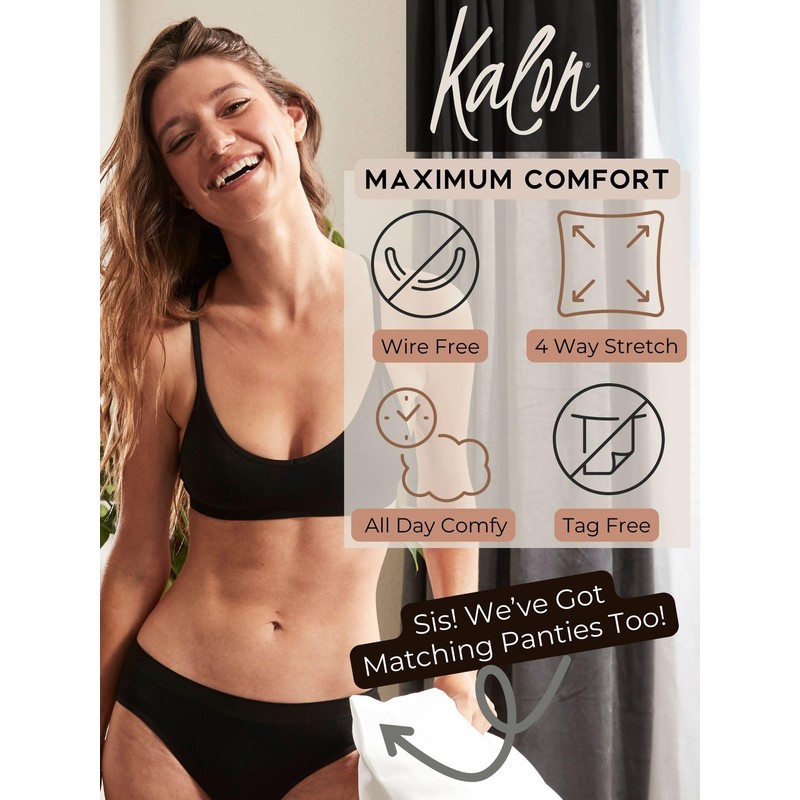 - 4-Pack Womens Seamless V Neck Wire Free Bralettes by Kalon. These bras match perfectly with the Kalon Womens Underwear - See Chart Below. Kalon is on a mission to make the best everyday wirefree bras for women. A bralette with just the right amount of light support to balance comfort and functionality. Versatile Under Clothing: Wear a cute t shirt top or cami or under dresses & blouses. And checkout the range of nude colors.