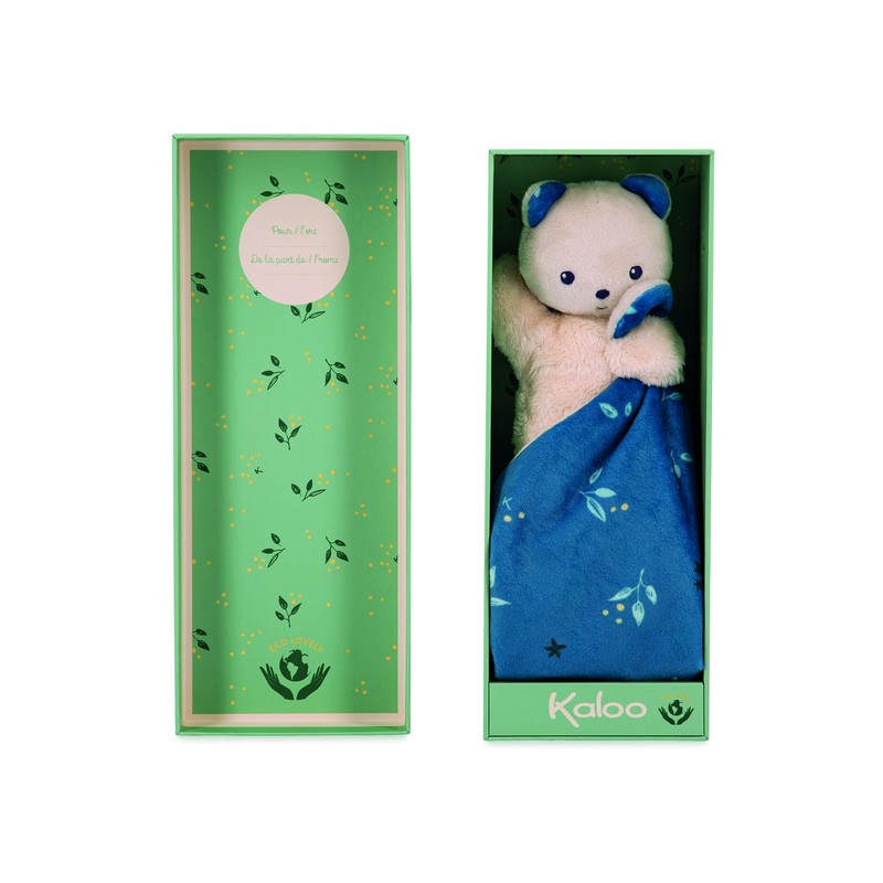 Kaloo - Carré Douceur - Night Owl Bear Comforter - Square: 7.1" x 7.1" / 18 x 18 cm - Babies’ Soft Toy - Ultra-Soft Materials - Gift Box - K972004