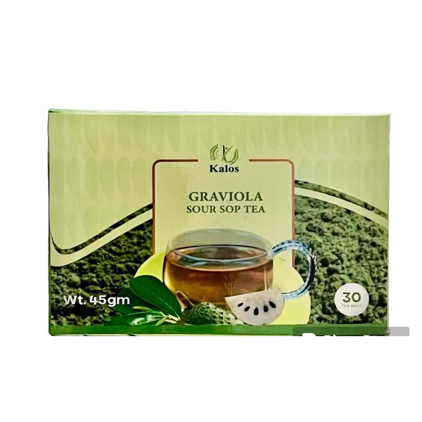 - -Kalos Graviola Tea Bags offer 30 natural Soursop tea bags for a delightful and calming experience, embracing the essence of nature. -Elevate your tea ritual with Kalos' Finest: Soursop Tea from Source Nutrition, expertly cut and presented in a package of pure goodness. -Kalos Graviola Tea Bags, known as 30 Sip-worthy Moments, invite you to unwind and savor tranquility in each sip. Packed with natural flavors, it offers a soothing experience. -Make Kalos Graviola Tea your Daily Wellness Brew – a daily ritual packed with natural goodness, promoting overall wellness.