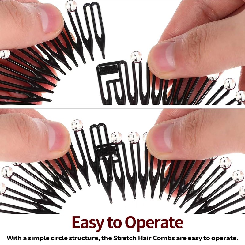 - Easy to use: simply pull the hair back and secure with the lock in the back. The combs and headbands stretch easily and do not get caught in the hair