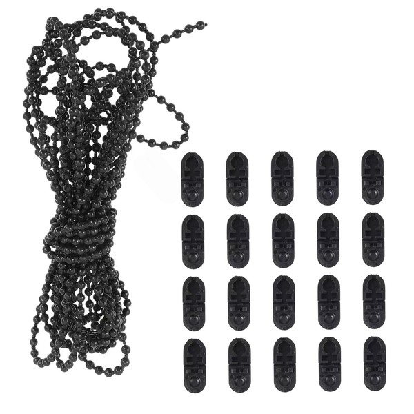 KALUROIL Roller Chain High-Quality Curtain Rods & Accessories for Stylish Window Decorations - Includes 10 m Roller Blind Chain & 20 Clips (Black)