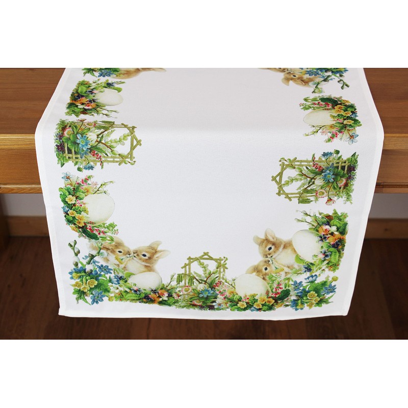 KAMACA Table Runner Spring Easter Flowers Rabbit Decor Easter Bunny Easter Eggs Colourful Washable Kitchen Dining Table Decoration (40 x 140 cm Easter Nostalgic)