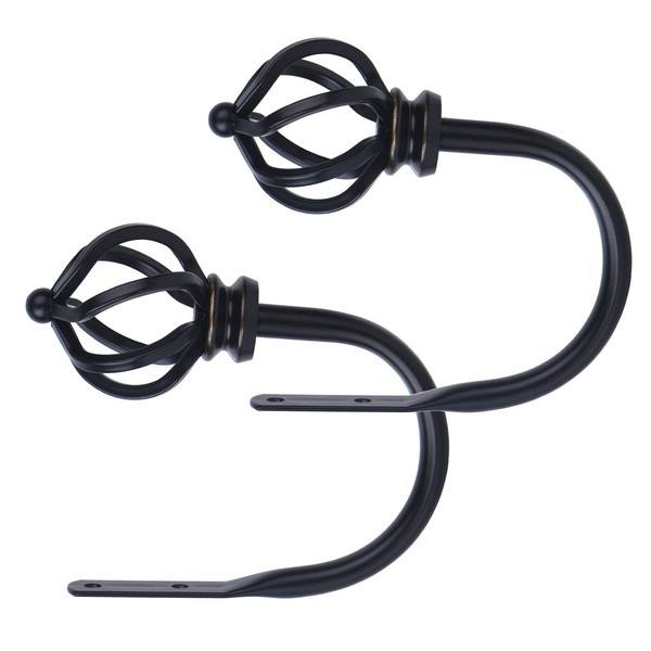 KAMANINA Decorative Curtain Drapery Holdbacks for Wall, Black Curtain Tiebacks Holders with Screws Wall Mounted for Drapes Window Home Decoration, Twisted Cage Finials, 1 Pair/2 Pack, Small