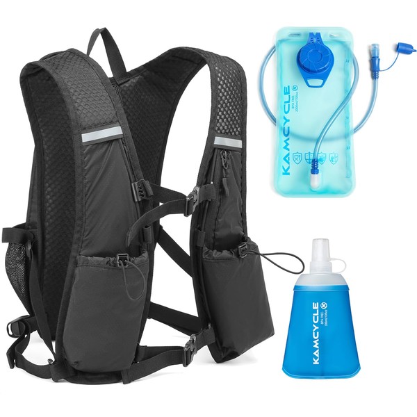 Kamcycle Hydration Backpack Running Hydration Backpack Bicycle Running Backpack with Hydration Bladder 2 L and 1 Piece 300 ml Soft Bottle, BPA-Free Ultralight Trail Backpack Hydration Vest