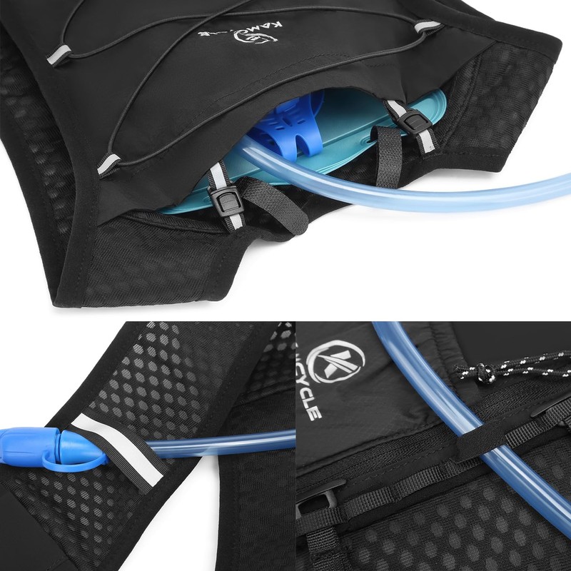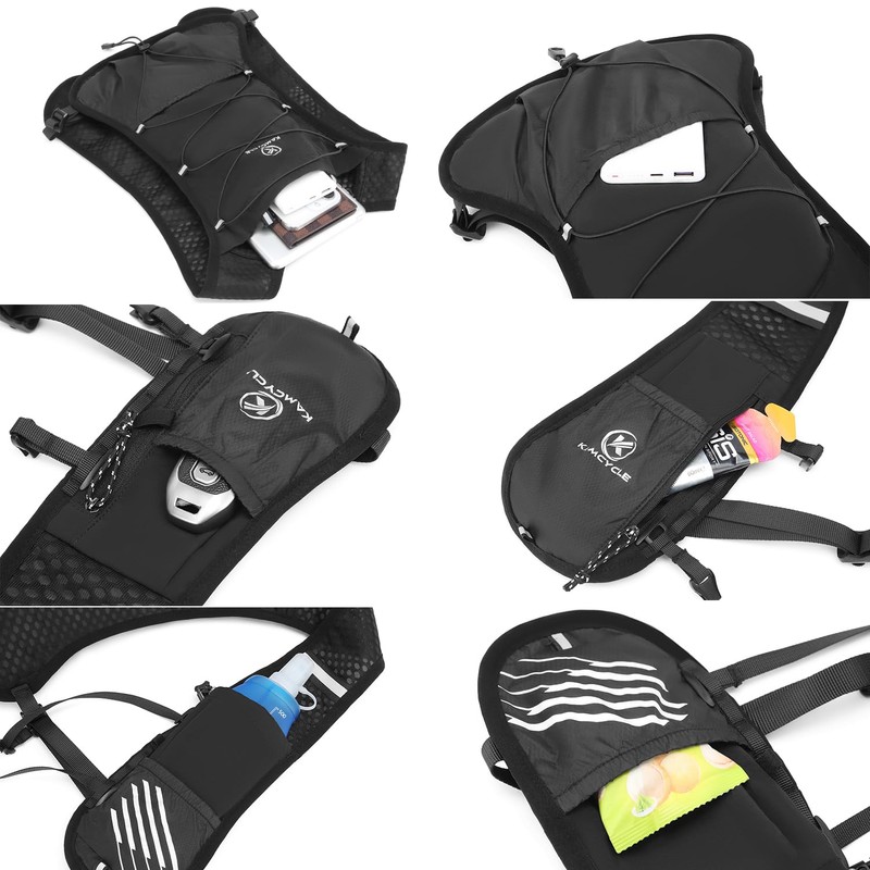 KAMCYCLE Laufweste, Trinkweste, Rucksack mit 500 ml Laufwasserflasche oder 2 l Trinkblase, leichte, reflektierende Handyhalterung für Radfahren, Wandern (mit 2 l Trinkblase)