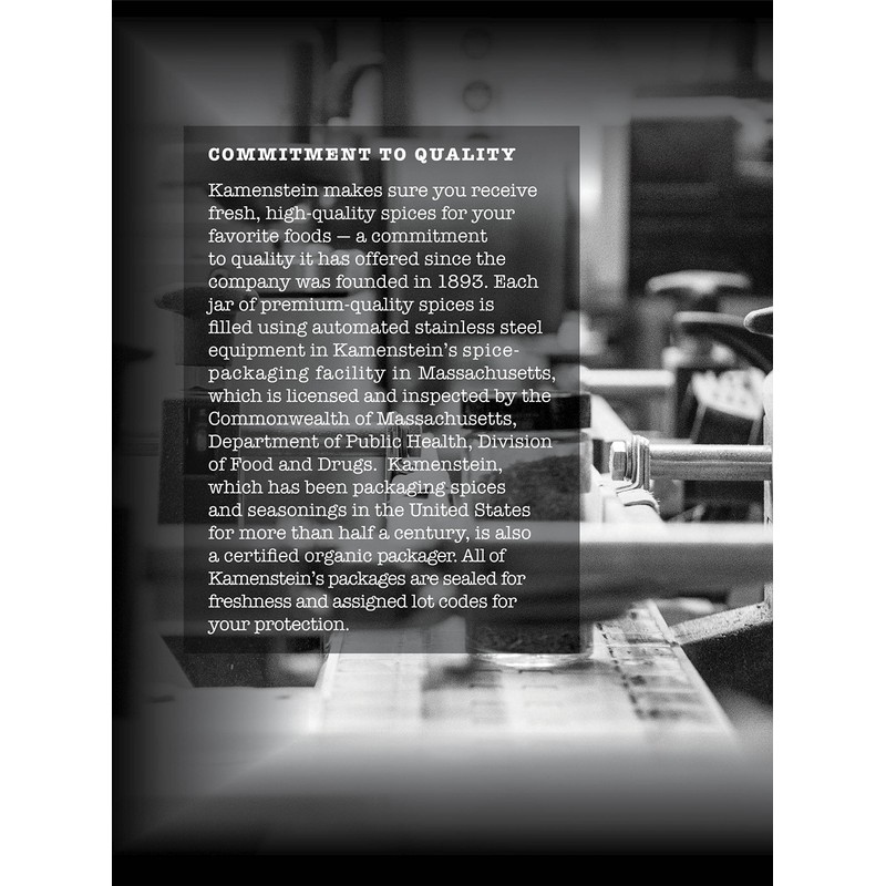 • FILLED IN THE USA: All spices and spice jars are filled and sealed for freshness in Kamenstein's own and monitor facility in Winchendon, Massachusetts, U.S.A