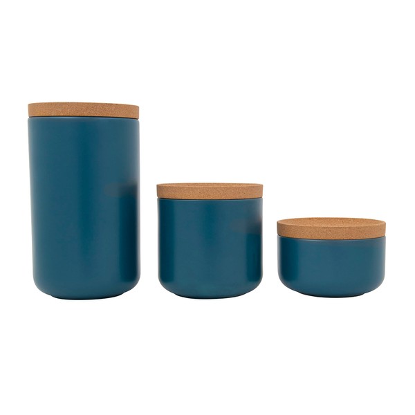 Kamenstein Ceramic and Cork Set of 3 Stackable Canisters, 1/2 qt, 1 qt, 2 qt, Teal