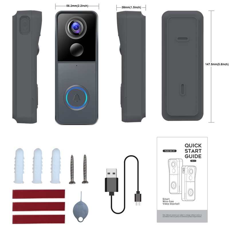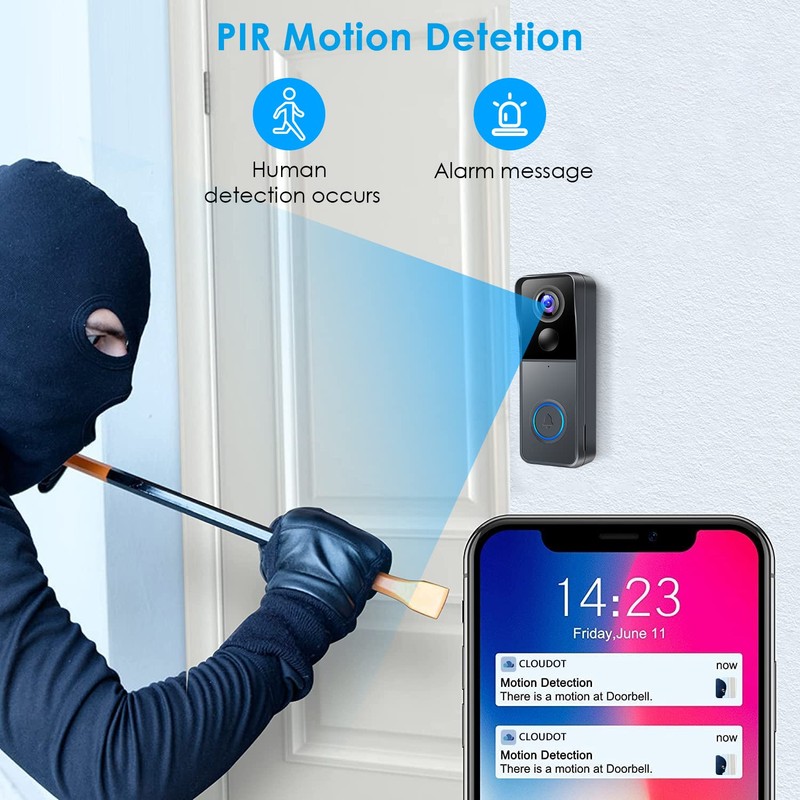 - 【Two -way Audio & Instant Notifications】WiFi smart video doorbell camera if you decide to press the bell button then you will get a notification on your phone app and you will be able to speak live to whoever is at your door. You can set the wireless doorbell camera app to send you notification for every detected motion.When someone rings the door bells ,you get a full screen message on you phone from door cameras to pick up like a phone call.