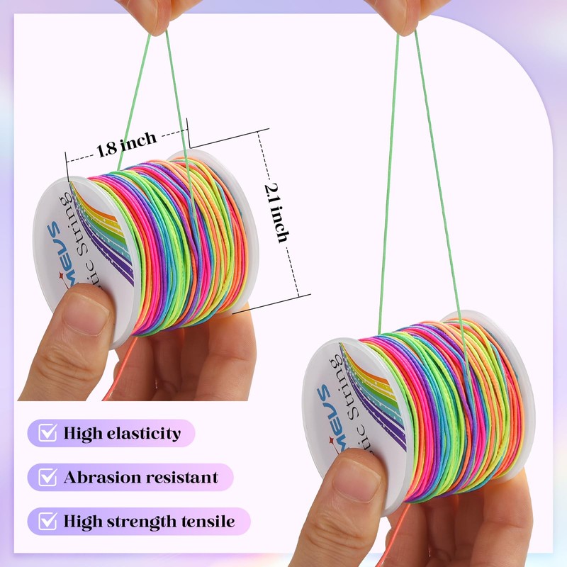 - Aesthetic Elastic String for Bracelets: Rainbow-colored elastic string, with an attractive appearance. The bracelets and necklaces made from them look very nice