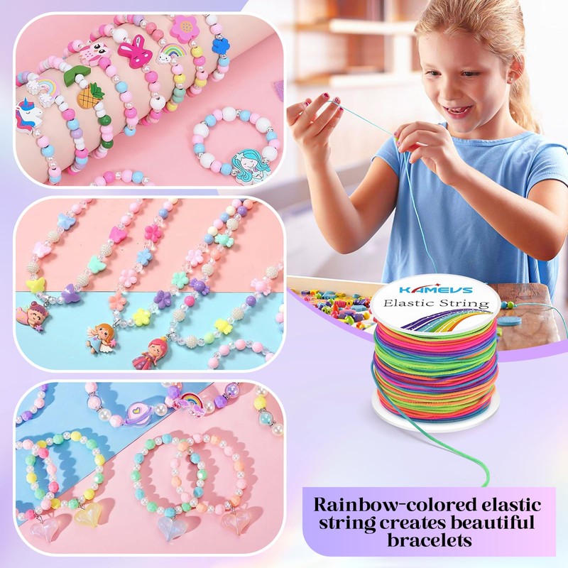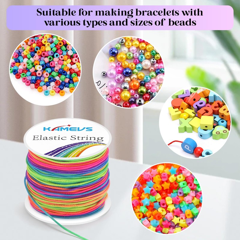 KAMEVS Elastic String for Bracelets, 1mm Elastic Beads Cord for Stretchy Bracelet String Making, Rainbow Elastic String for Beading, Necklaces, Jewelry Making, and Craft Supplies