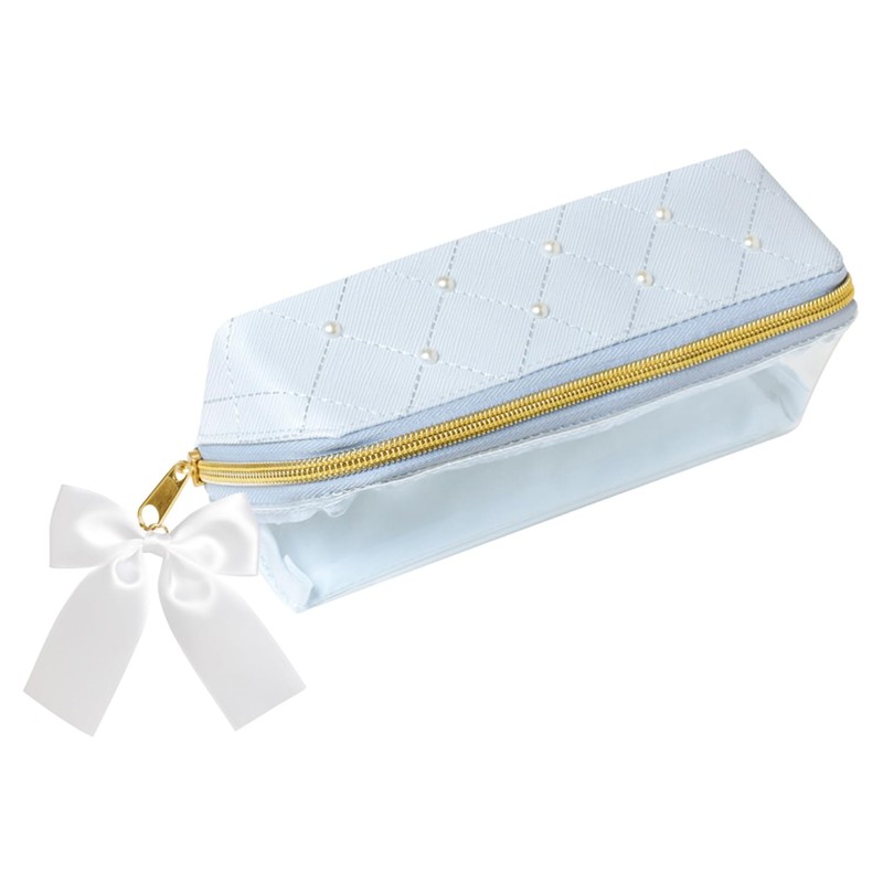 - This pen case is easy to see the contents that open quickly and easily. Trendy design with quilted embroidery, pearls, and big ribbon charms