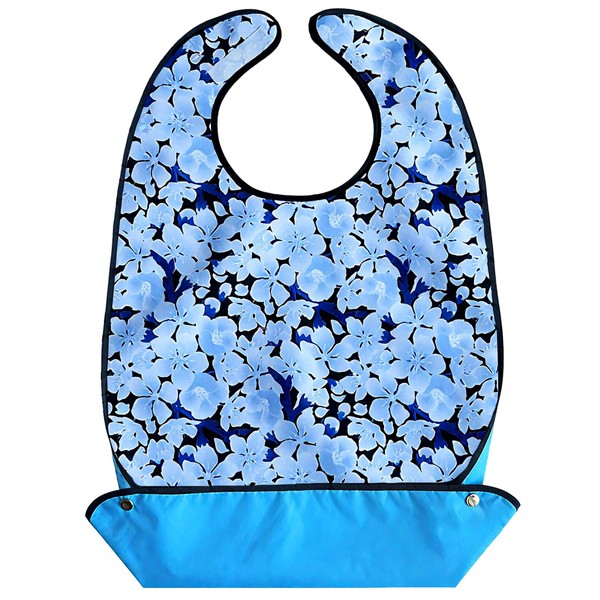 [Kamiqiou] 介護用エプロン お食事エプロン 防水 立体ポケット エプロン おしゃれ お手入れ簡単 食事用 高耐久性 大人用 汚れ防止 給食 高齢者 繰り返し使用 (ブルーA)