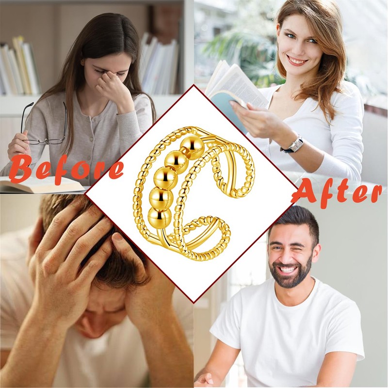 - Magic anxiety ring: silver anxiety ring: the double charm of fashion and healing. If you feel anxious, excited or stressed, simply twist the beads on the anxiety ring. The tactile feeling when the beads slide between your fingers can distract your attention and bring you inner peace. With its three-layer design that combines fashion and function, the fidget ring is an indispensable fashion accessory.