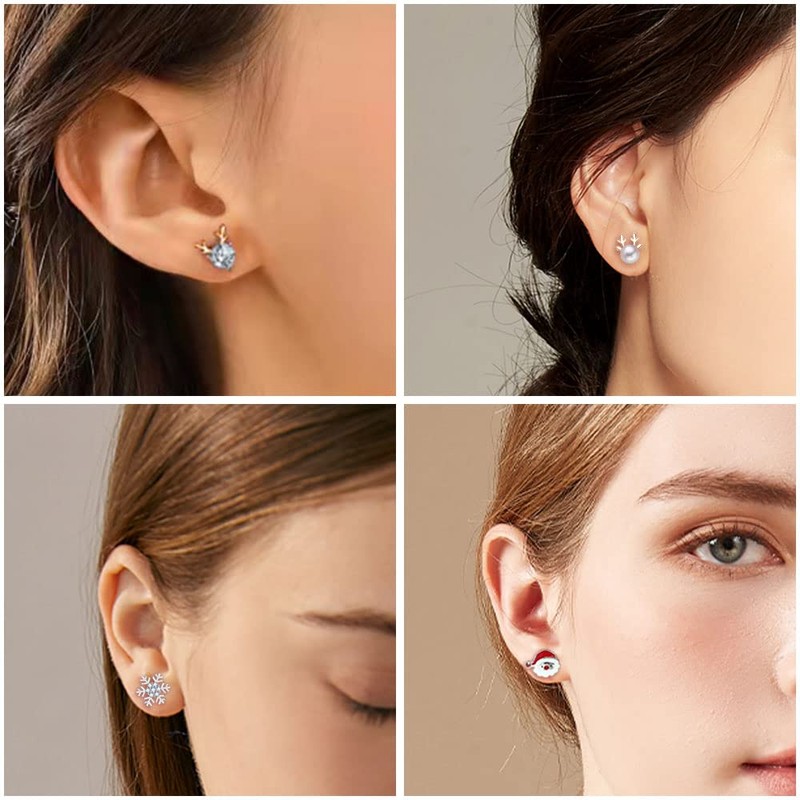 - Christmas stud earrings material: these women's silver stud earrings are made of genuine 925 sterling silver and white AAA zirconia + white gold / rose gold / yellow gold plated. They are hypoallergenic, nickel-free, lead-free and cadmium-free and suitable for almost all sensitive ears. They do not have an allergic reaction when wearing. Silver Christmas stud earrings with butterfly clasp are stable and safe. So you don't have to worry about losing the stud earrings.