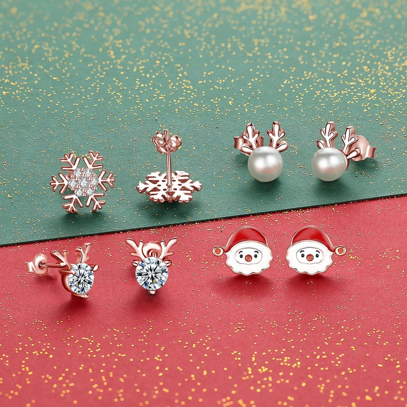- Silver Christmas stud earrings: have you found your favourite Christmas stud earrings for Christmas? Now we have elk Christmas stud earrings with pearl for you to choose from. Silver women's elk pearl stud earrings with Christmas element are sweet, elegant and pretty. When you wear these Christmas stud earrings, it is as if everyone says "Merry Christmas" to you. Suitable for girls, women and daughters.