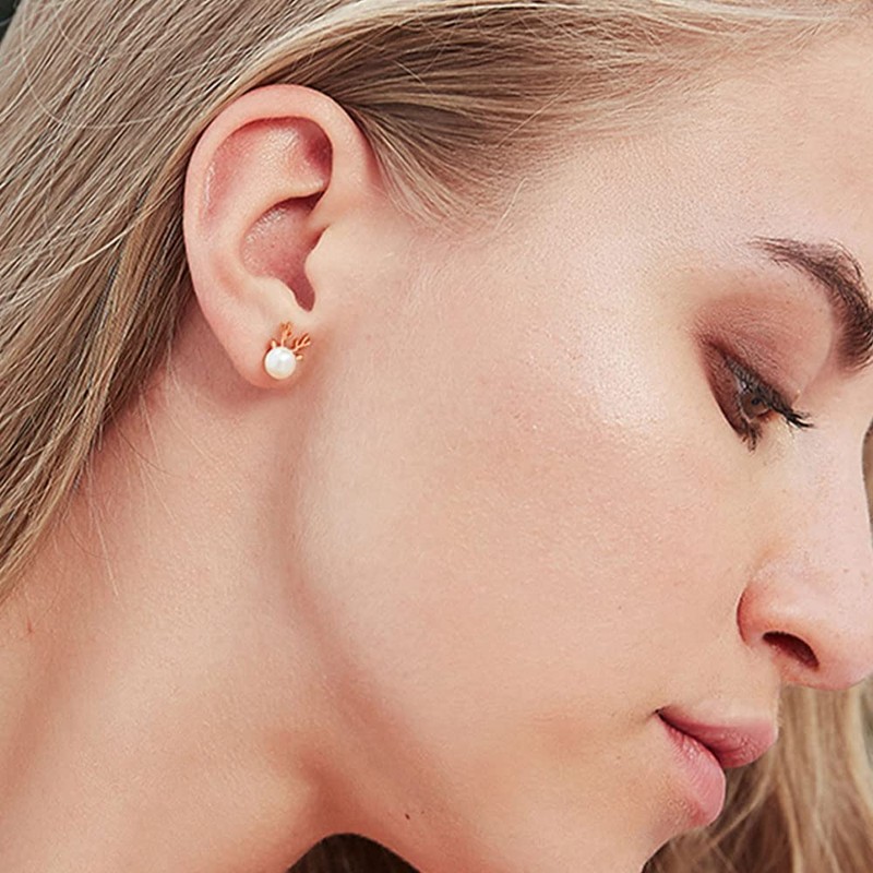 Elk stud earrings are more suitable for winter. Elk stud earrings with pearl make a lively and lovely impression in winter.