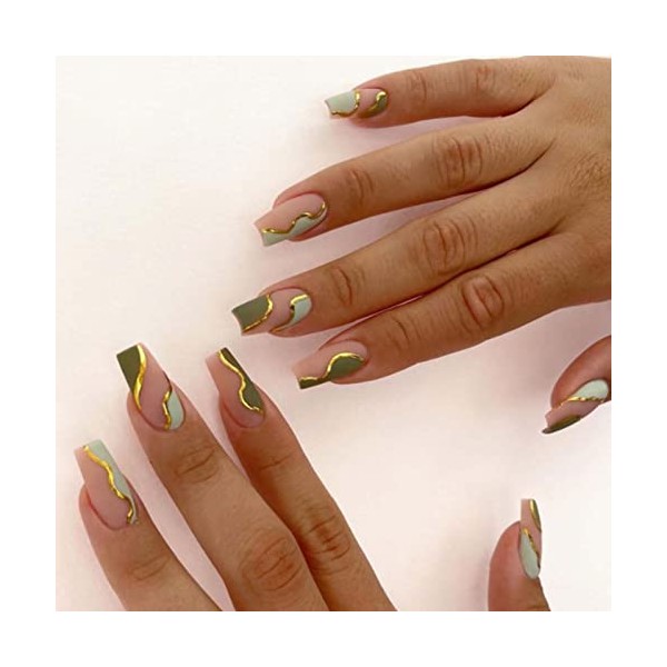 - 【Minimal installation】False nails with gold designs just choose the nail piece that suits you, polish the nail bed, paste the jelly glue we give away, and press trendy nails for 30s to get the natural manicure that girls like. Due to the limited use of jelly glue, we recommend that you use your own glue