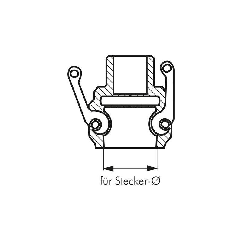 *For liquids, please use stainless steel, brass or aluminium, pressure data at +40°C, **plug diameter 53.4 mm with reduced connection. This does not comply with the standard, ***Four hand levers, ****One hand lever without locking pin
