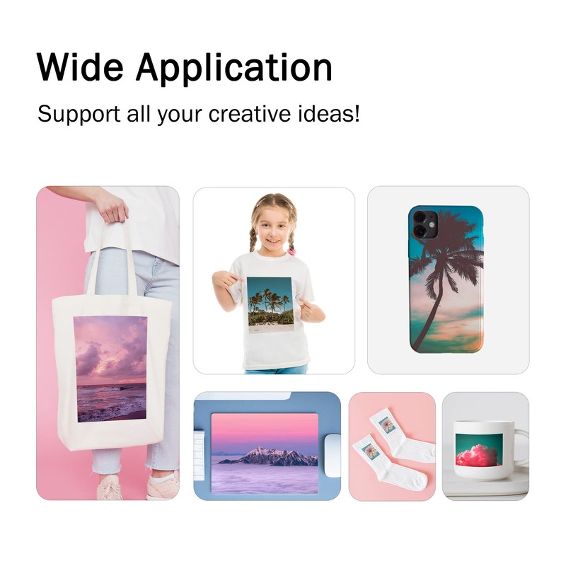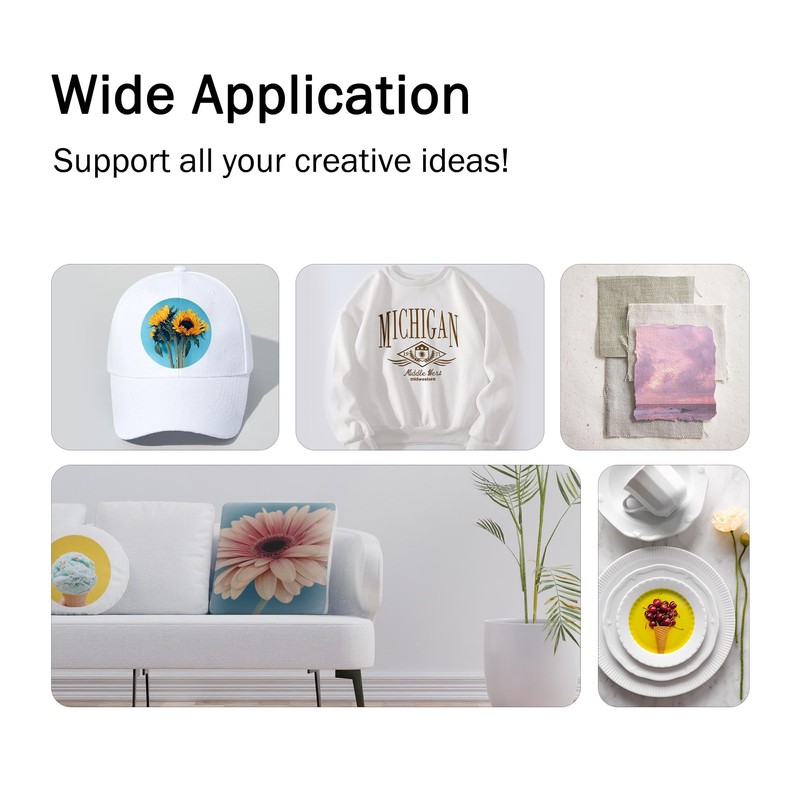 Wide range of applications, suitable for T-shirts, fabrics, pillowcases, cups, quilts, cross stitch, shoes, socks, hats, ceramics, boxes, bags, decorative fabrics, hoodies, flags, banners, mobile phone cases, mouse pads, etc. It supports all your creative ideas.