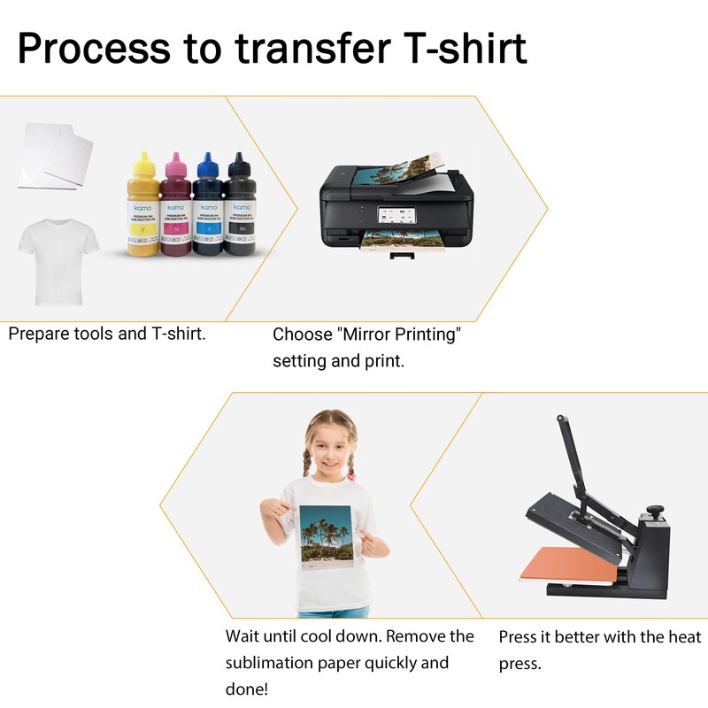 • PRINTER FRIENDLY: Kamo advanced sublimation ink applied, dries quickly, no peculiar smell, prevents clogging. Kamo sublimation ink can be safely used with compatible home or office printers.