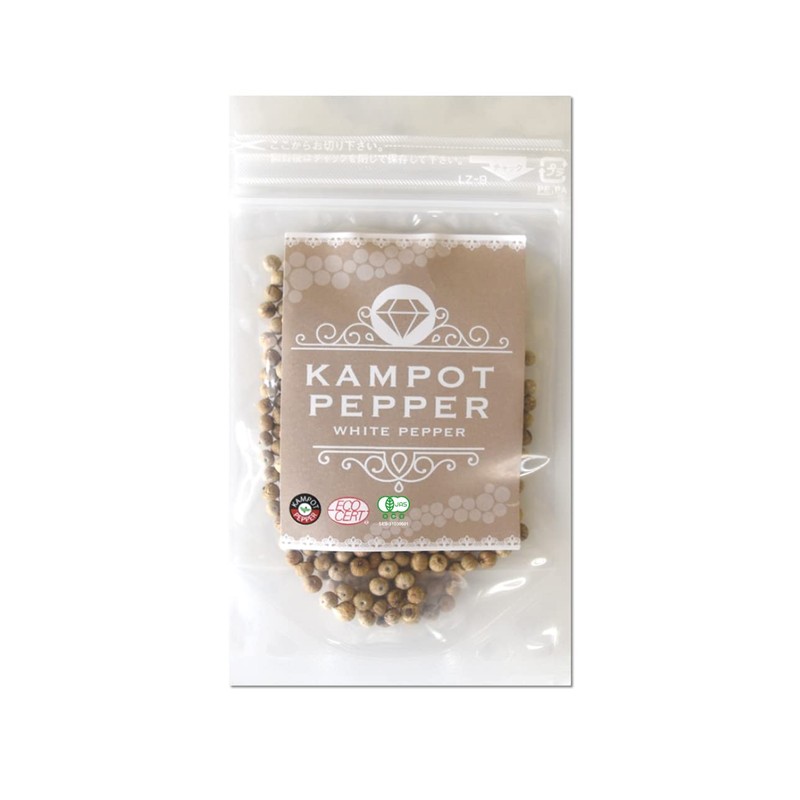 - Campot Pepper White Pepper - White pepper is more elegant and gentle than black pepper. Mild aroma and spiciness is that the skin of the fruit contains a lot of essential oils, so the fragrance becomes more gentle than black peppers. The aroma and spiciness are somewhat mild, so it is suitable for relatively pale white dishes such as white fish, poultry and eggs, and finished with milk or cream
