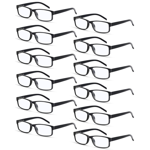 Kanayu 12 Pack Reading Glasses Bulk, 2 X Traditional Reading Glasses with Spring Hinges,Computer Eyeglasses with PU Leather Case for Men Women (Black)
