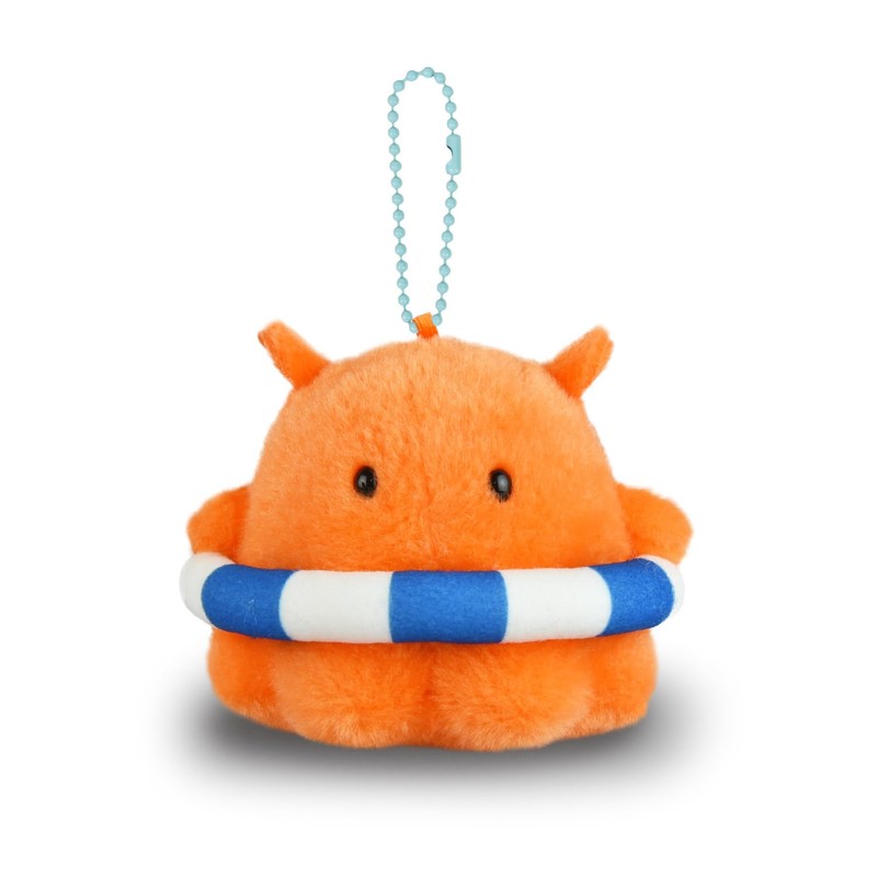 - This is a Mendaco mascot that is ready to enter the water with a swim ring