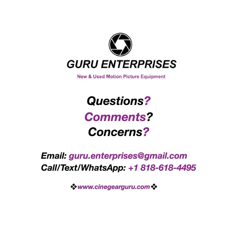 We at GuruEnterprises in Chatsworth, CA thank-you for stopping by. Please keep us in mindfor all your requirements in motion picture equipment in future.