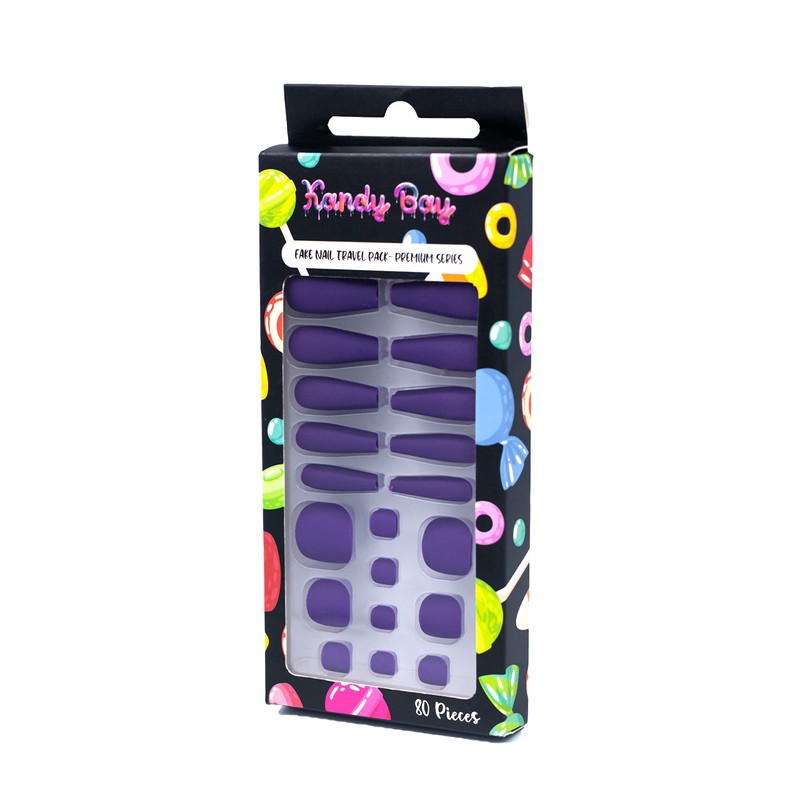 KANDY BAY Long Ballerina Acrylic Press on False Nails with Short Square Acrylic Press on False Toe Nails Travel Pack (Tools included) (Amethyst)