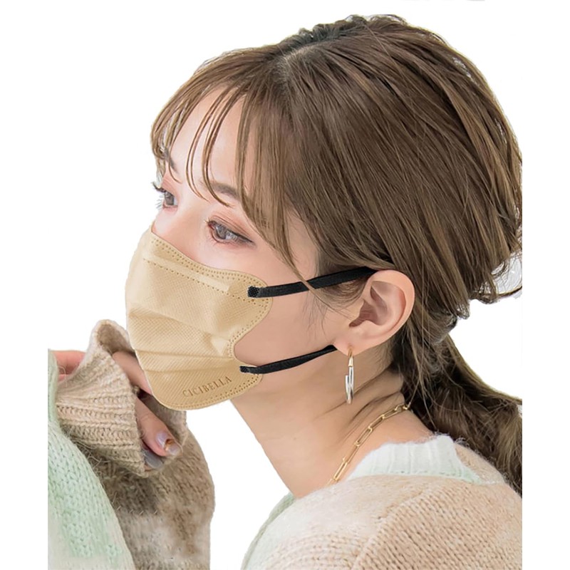 [KANEYAMA] 4Dマスク 立体マスク 敏感肌に優しい不織布 バイカラーマスク 血色マスク くちばし 使い捨て 小顔 チークマスク 耳が痛くならない カラーマスク\冷感マスク追加/ (ミルクティーベージュ)