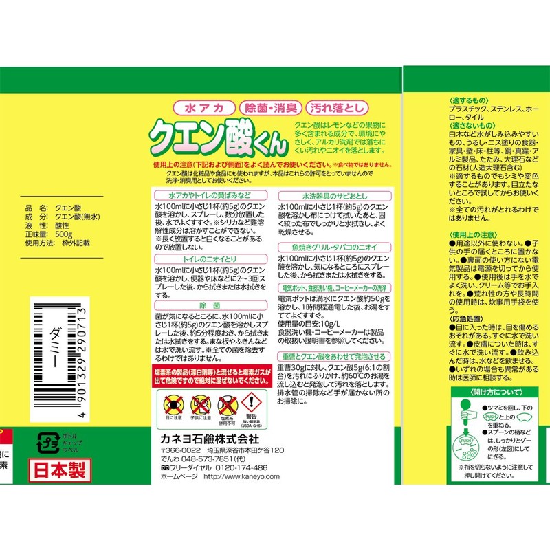 Kaneyo Soap, Multi-Cleaner, Citric Acid, Powder, 17.6 oz (500 g)