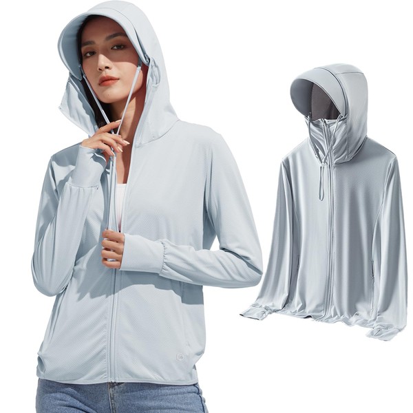 [KANGNAN] UVカット ラッシュガード レディース 長袖 パーカー 着脱可能なつば 紫外線対策 UPF50+ 指穴付き 速乾通気 ウォーキング アウター シンプル(L)