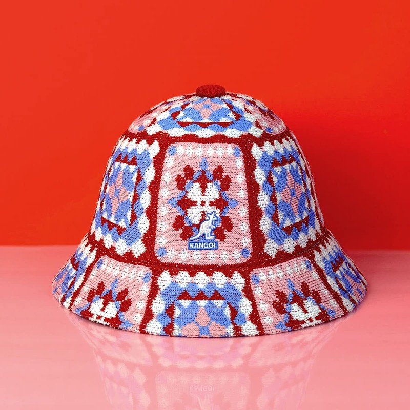 The Arts & Crafts Casual By Kangol is their iconic bell shape bucket with a vintage twist. Inspired by your Granny's hand crocheted blanket, its the perfect mix of texture, colors, and vintage style. Crafted from a recyclced polyester yarn for the base color, it mixes Kangol's beloved Tropic and Bermuda yarns for subtle textured design. The pop color combinations will work with all of your favorite outfits.