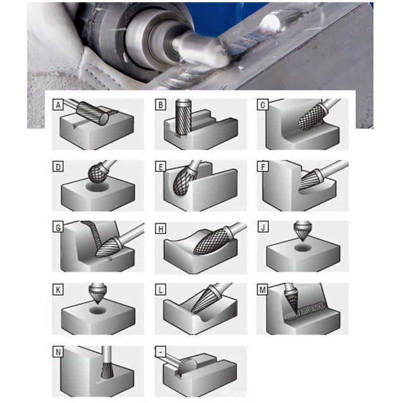 - The carbide rotary burr bit are tree shape end cut, Size: 2.7" Total length, 1/4" shank diameter, 5/8" cutter diameter, 1" length of cut,double cut burr bit.