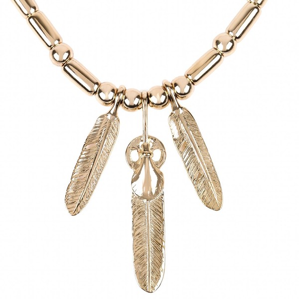 • With a nice weight and an elegant sparkle, this product has an overwhelming presence. An all-gold color feather necklace with an elegant sparkle. An adult accessory that is a step above the rest