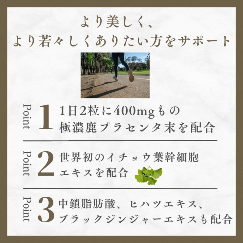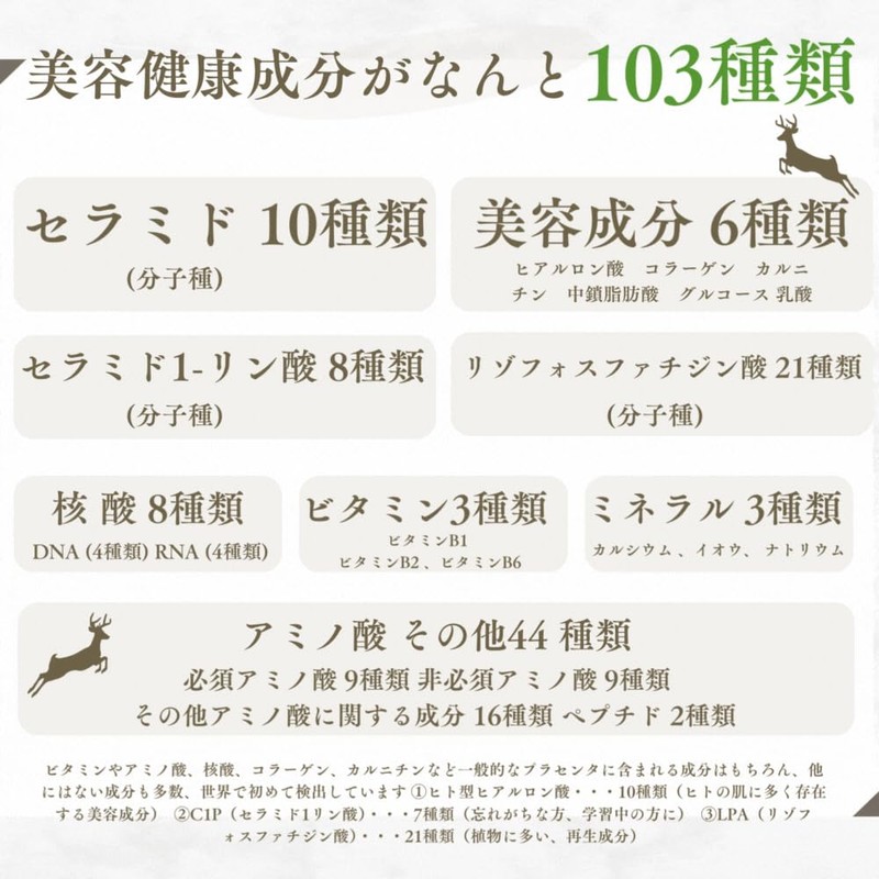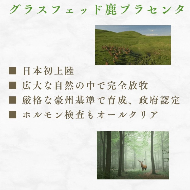 • オーストラリアのグラスフェッド鹿由来のプラセンタを使用し、美と健康をサポートします。高品質な成分で美容を内側からケア。