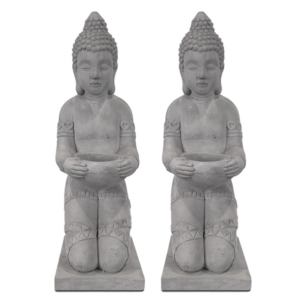Kante 12.8" H Set of 2 Cement Composite Buddha Statues Ornament, Natural Concrete Indoor/Outdoor Tabletop Décor