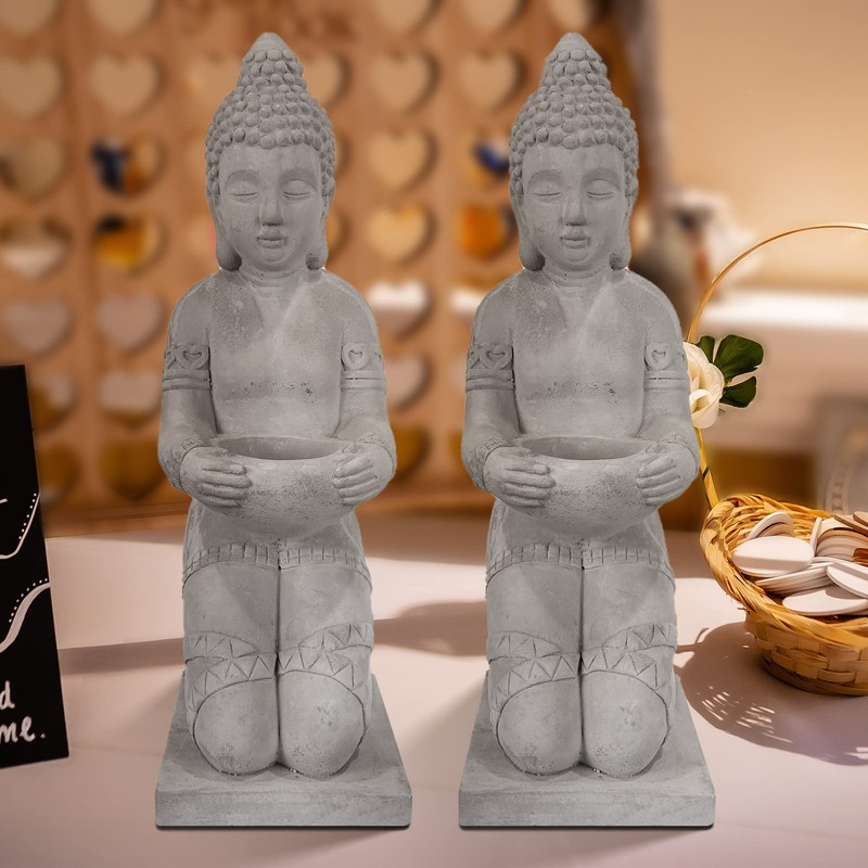 - NATURAL CONCRETE LOOK: These Buddha candle holders statues features a natural concrete look and are handmade through an Eco-friendly manufacturing process, with strong UV resistant ability that stays well in wind, rain, hot and cold season