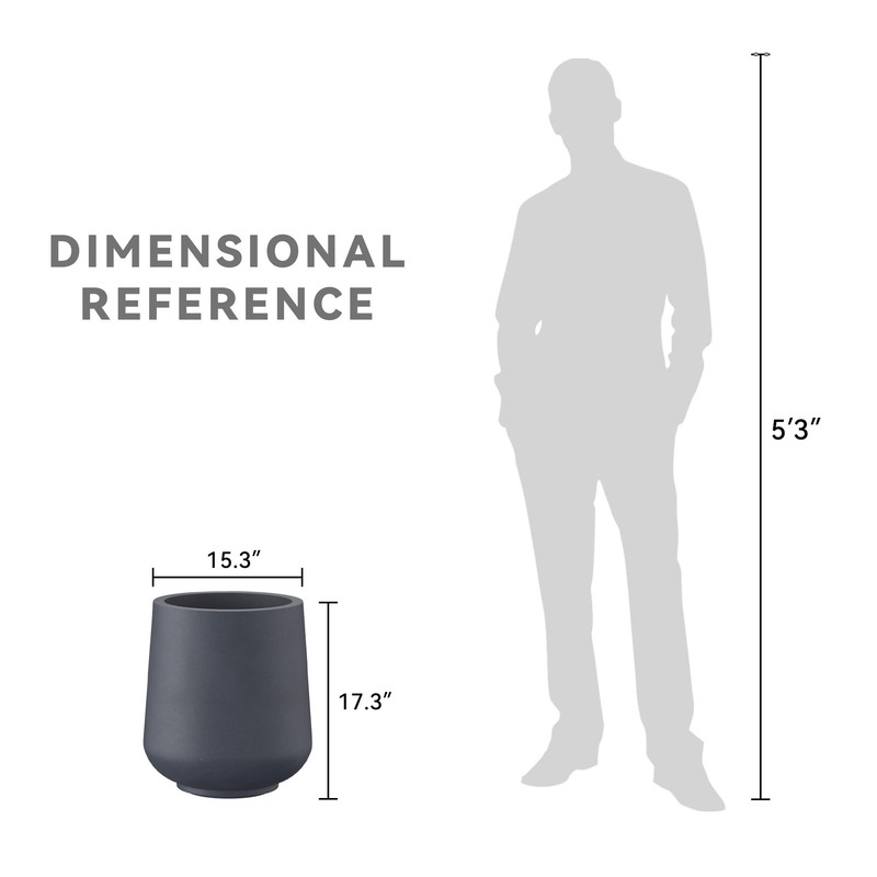 Kante 15.3" Dia Round Concrete Planter, Outdoor Indoor Large Plant Pots Containers with Drainage Hole and Rubber Plug for Home Garden Patio, Dark Gray