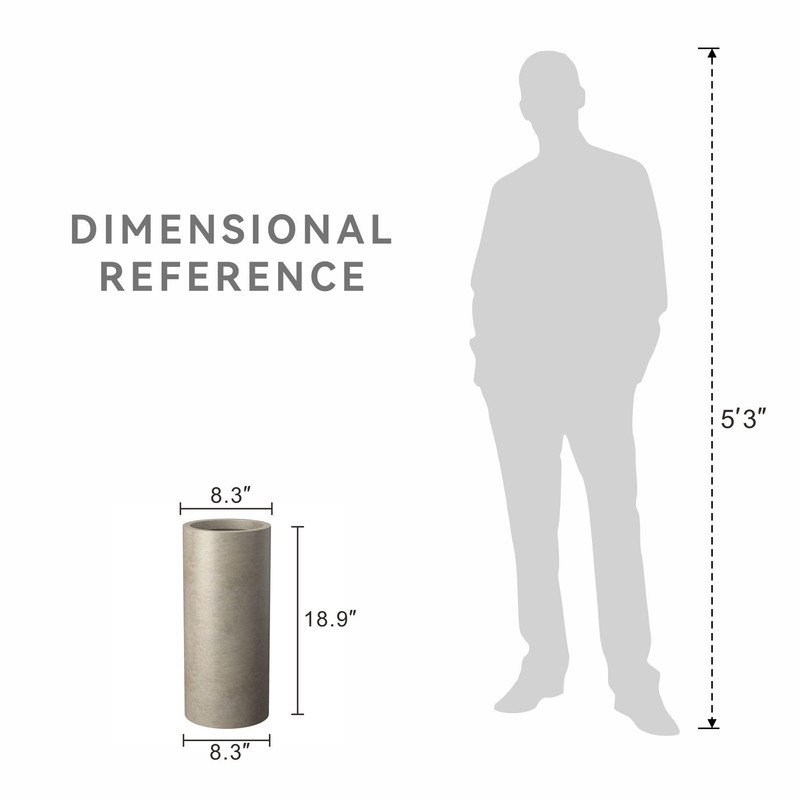 Kante 18.9 Inch Tall Cylindrical Planter, Large Round Plant Pots with Drainage Hole, Made with Concrete, Suitable for Indoor Outdoor Plants, Home Decor, Weathered Concrete