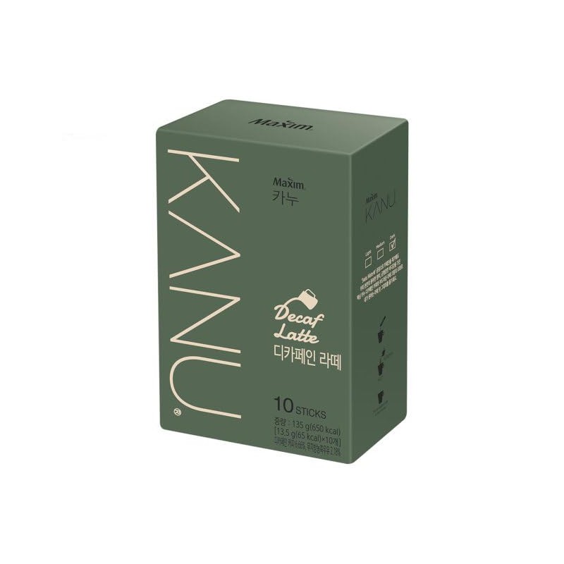 Kanu Decaf Latte Korea Instant Coffee 13.5g(65kcal) X 10 Sticks, Decaffeinated Sweet Latte
