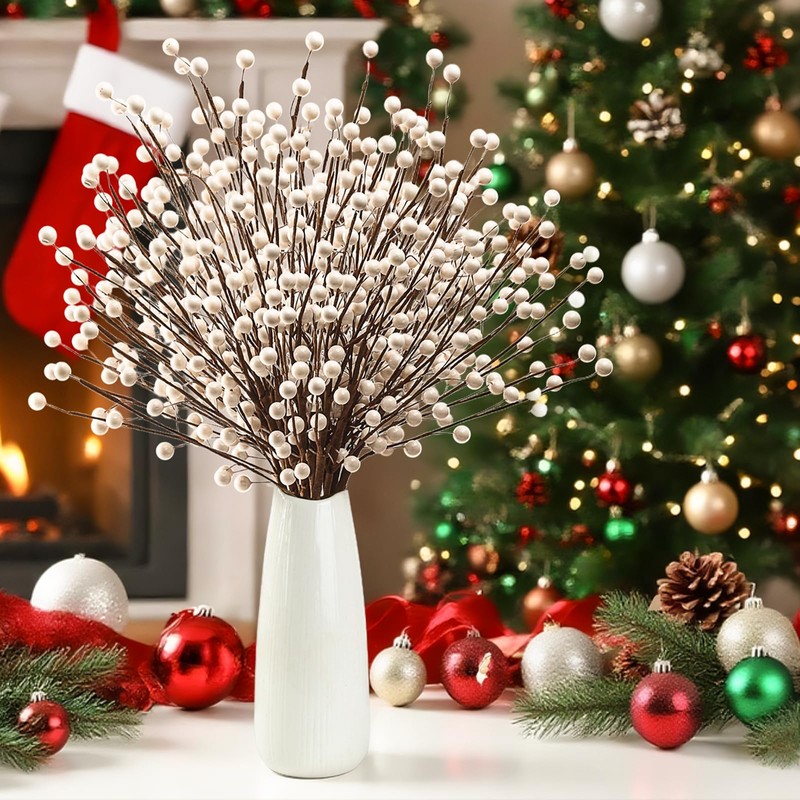 - Elegant Artificial Berry Stems – Set of 12pcs 17-inch artificial berry stems, designed in a creamy tone to add a soft, elegant touch to your Christmas tree, wreaths, garlands, or winter floral arrangements.