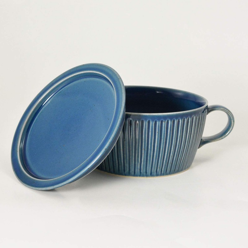 Kanzando Hasami Ware Soup Cup with Lid Ruri