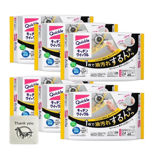 Kao Kitchen Quickle Cleaning Sheet, Refill, Jumbo Pack, Pack of 24, Set of 6 + Kunutonn Original Logo e Bonus